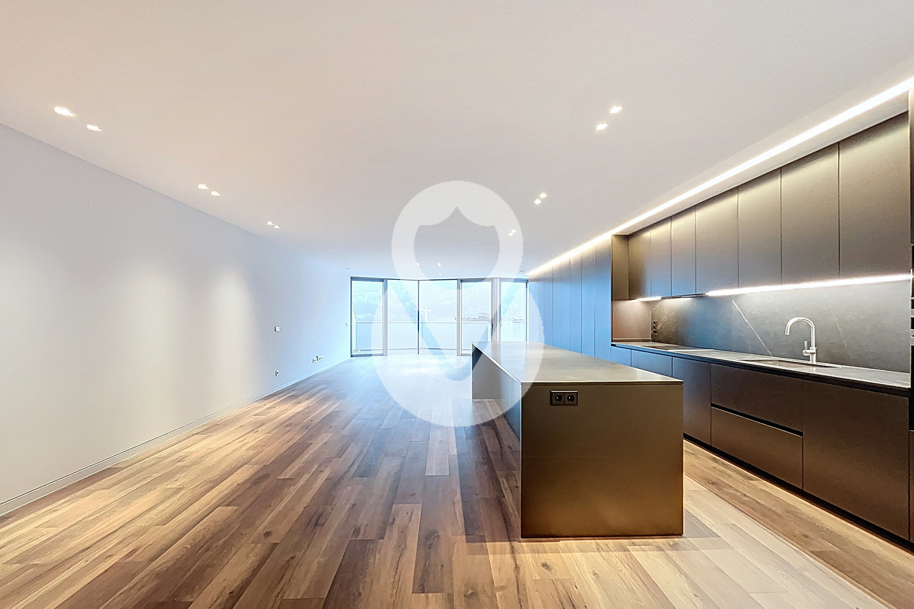 La zona de estar cuenta con un espacioso salón-comedor con cocina abierta de diseño moderno, que favorece la luminosidad y la amplitud del espacio. Desde el salón se accede a la agradable terraza con vistas y bien orientada al sur, ideal para disfrutar de momentos de relax al aire libre.