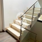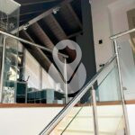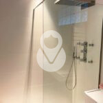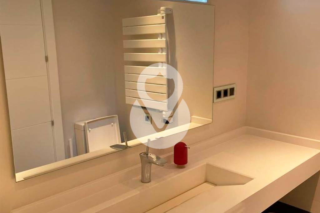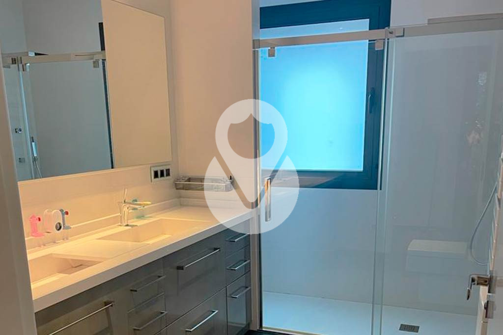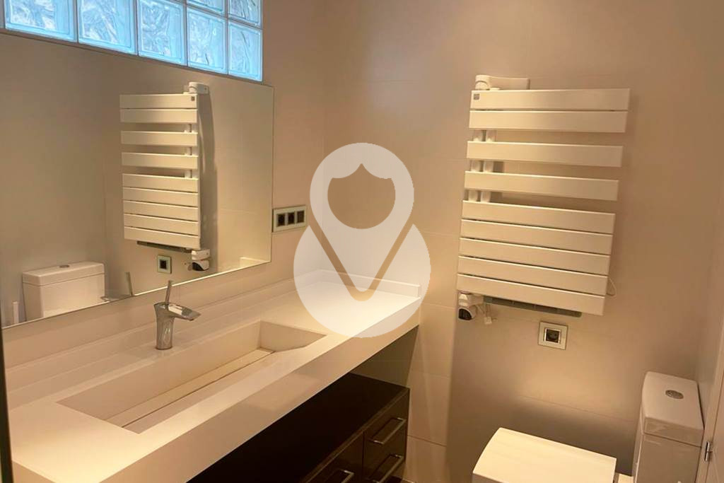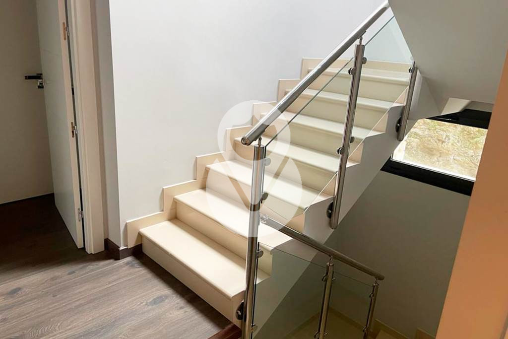 Unas elegantes escaleras con suelo de gres de color blanco perla, dan acceso a la segunda planta del chalet, donde encontramos una suite con armarios empotrados, con vestidor hecho a medida separado por una puerta corredera y un baño completo con toallero y armario empotrado, y 3 habitaciones dobles, todas con armarios empotrados, y un baño completo independiente con y ducha.