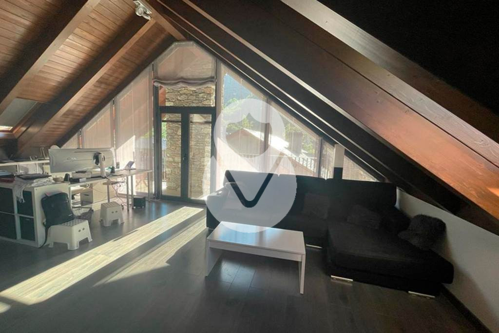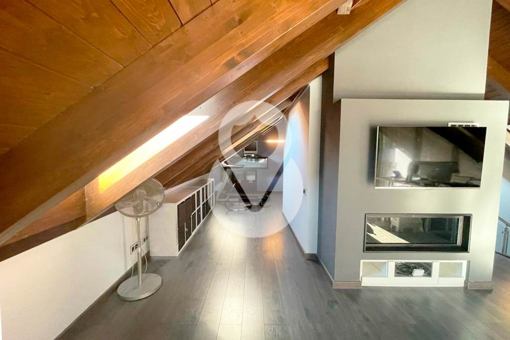 La tercera planta, bajocubierta, es para el relax o ocio, con una sala ploivalente ahora con un despacho, y una zona de estar con chimenea, y una zona habilitada como gimnasio. Desde esta planta se accede a una terraza con vistas al pueblo ya la montaña. Completa esta planta un baño completo con una gran bañera hridromasaje.