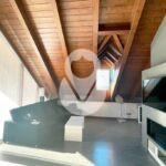 El chalet, todo exterior, donde domina la madera y la piedra, se divide en 3 anchas plantas, con ascensor, que se integran perfectamente, y con un gran patio y terraza bajo cubierta con vistas a las montañas del valle de alrededor. Todo el exterior de la casa y el patio, están con la piedra típica de la zona.