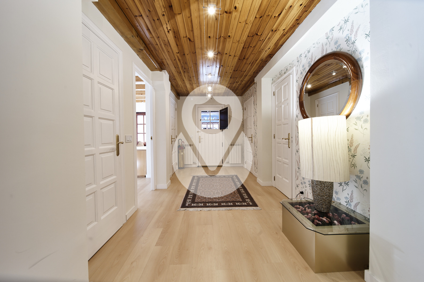 La primera planta consta de una amplia zona de recibidor que conduce hacia la luminosa sala-comedor con chimenea y salida a la terraza, además de una amplia cocina abierta de estilo moderno y mucho espacio de almacenamiento. Desde la cocina-comedor accedemos al jardín. Tenemos un segundo salón con salida a la terraza y con las escaleras que llevan al piso superior.Aquí también tenemos un aseo de cortesía y 2 prácticos armarios para colgar los abrigos y guardar los zapatos cuando venimos de la calle. Desde esta zona accedemos tanto al garaje como a la calle por la puerta principal.