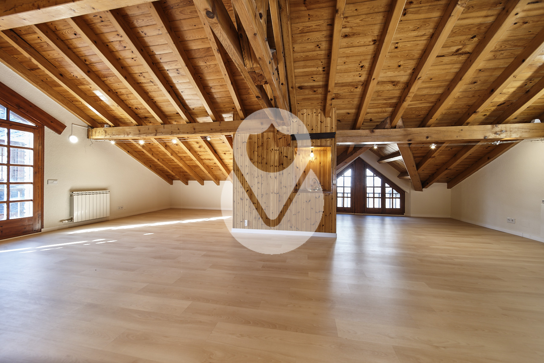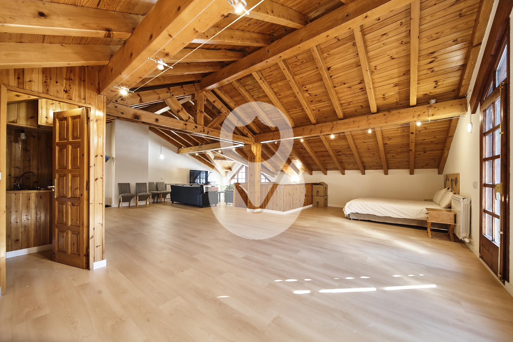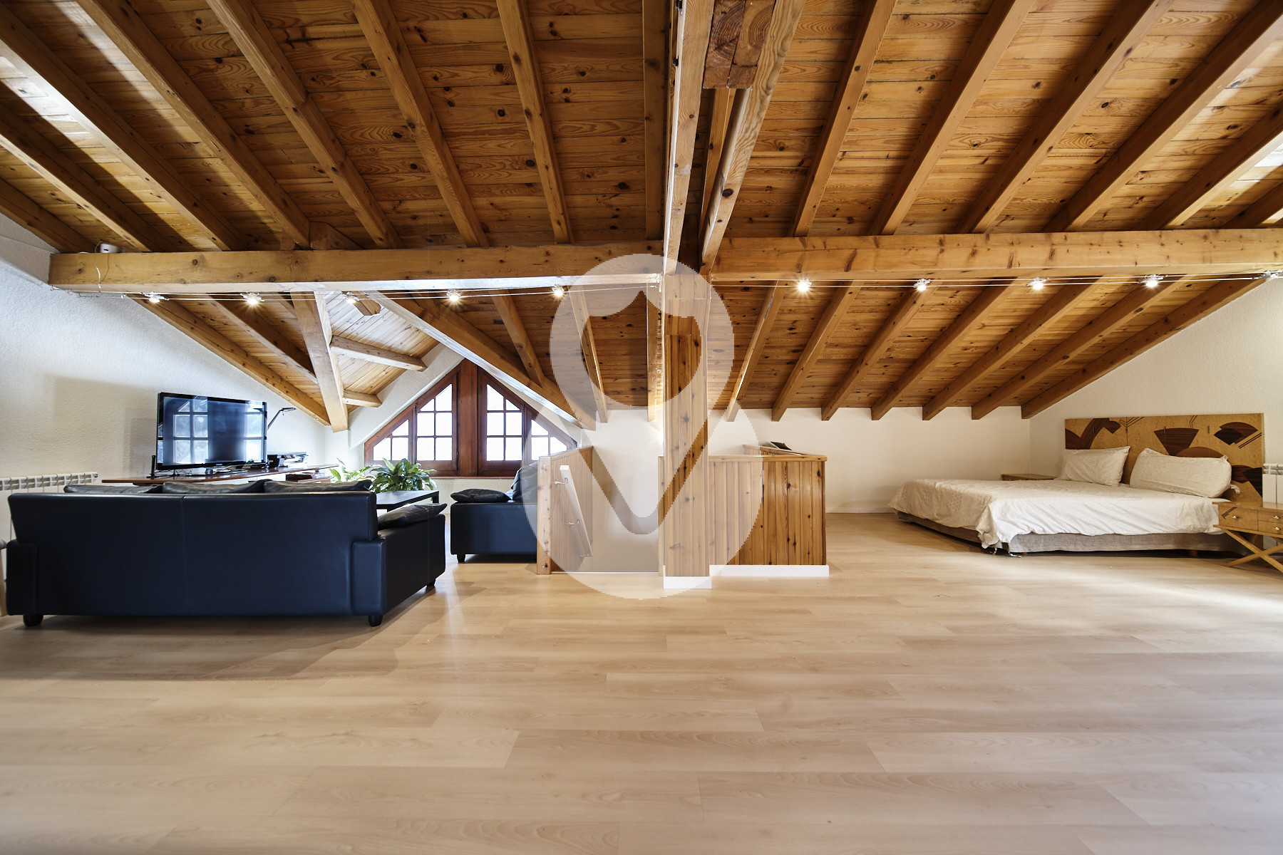 El altillo o 3ª planta es una gran sala diáfana, ahora abierta, que puede utilizarse como una habitación más tipo suite, o como sala de ocio, lo que convenga, y encontramos mucho espacio para almacenamiento.