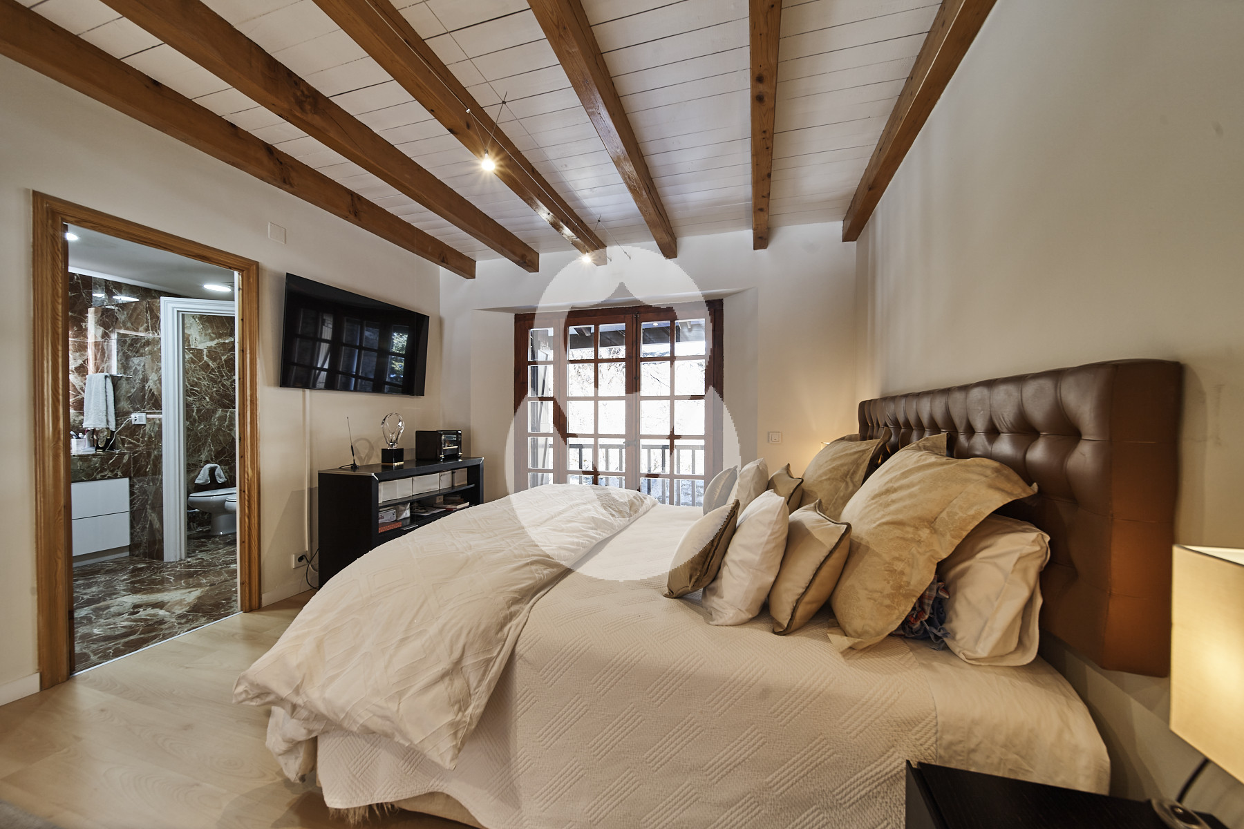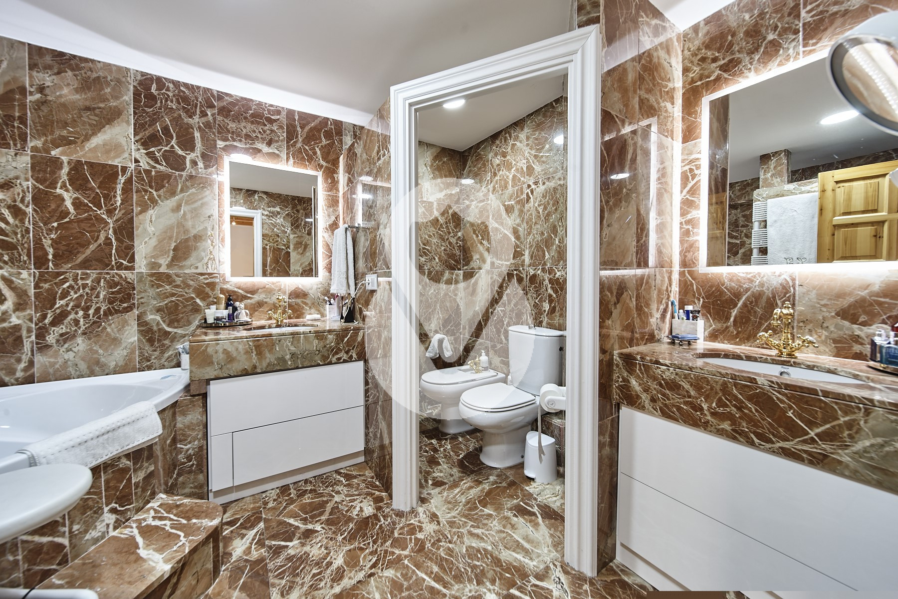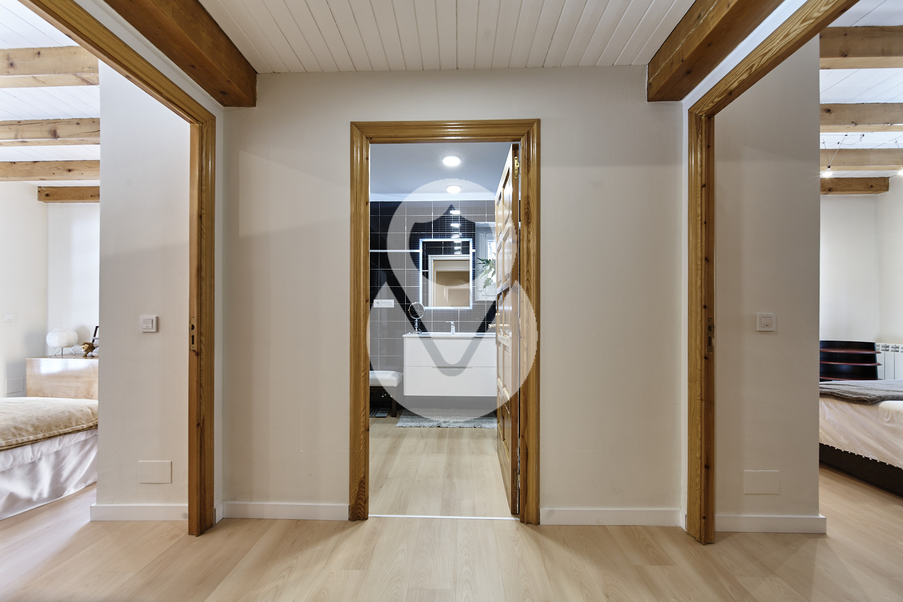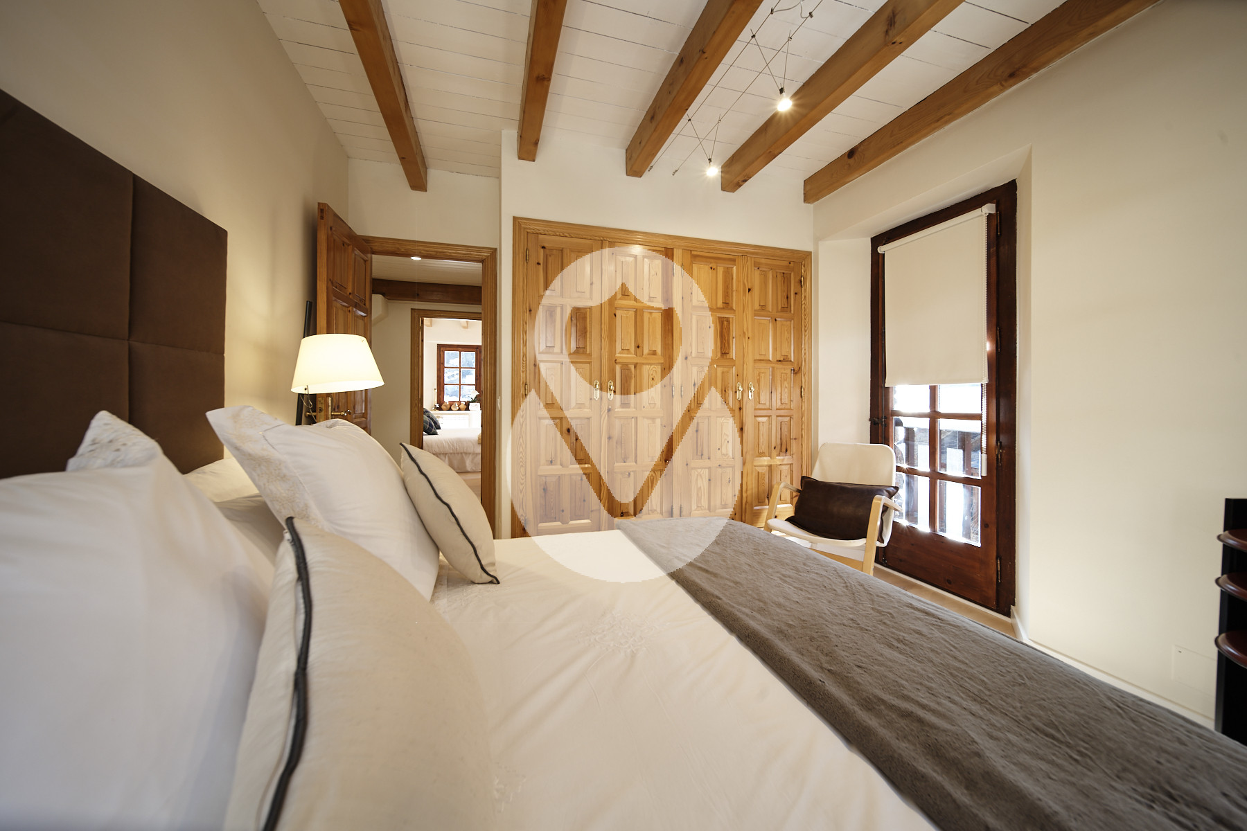 En la segunda planta encontramos la zona de noche, que cuenta con 3 habitaciones dobles, una es la master-suite con zona de vestidor y baño completo con bañera y ducha. Esta habitación tiene doble balcón, uno a cada lado de la estancia. Las otras dos habitaciones dobles también disponen de balcón, una de ellas tiene 2. Estas 2 habitaciones comparten un baño completo con bañera.
