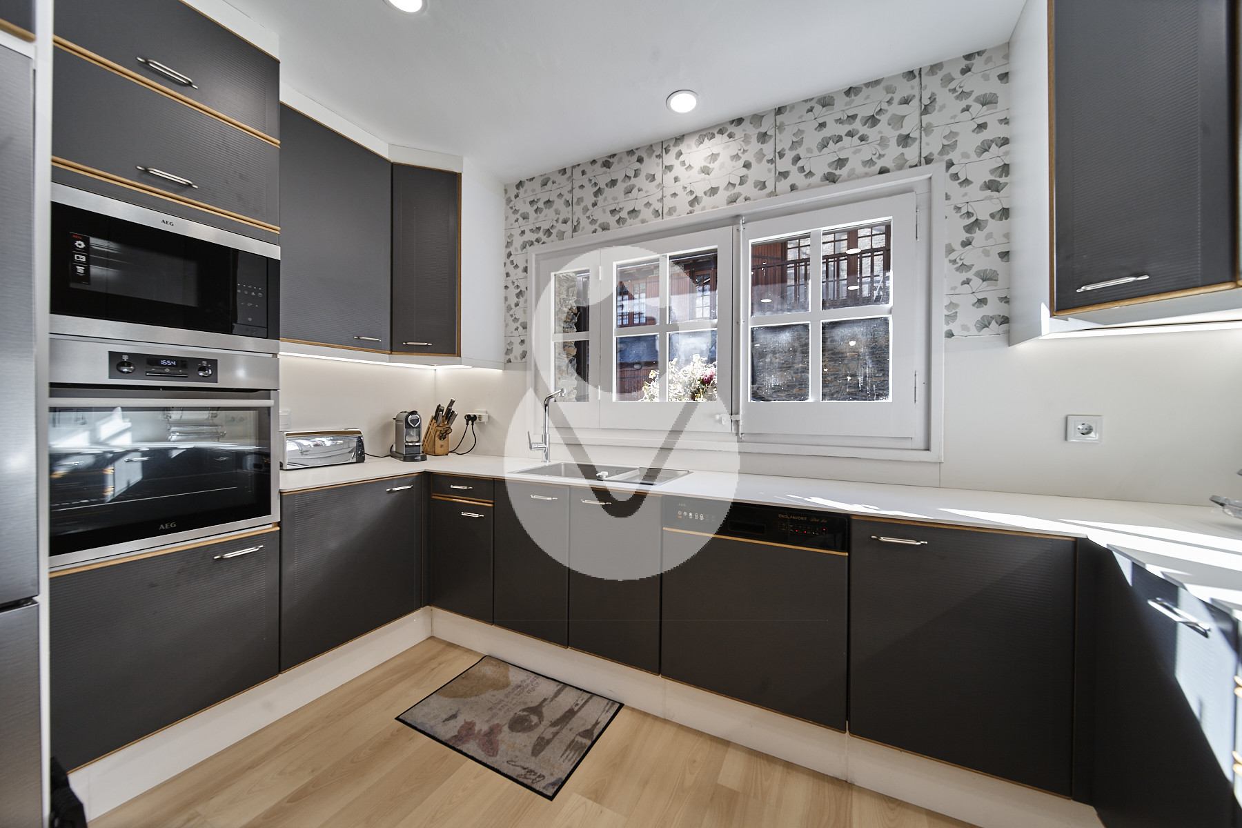 En la planta de calle tenemos doble entrada de garaje. En uno de ellos caben 2 coches y en el otro 3. Además tenemos el cuarto de la caldera, y el de la doble cuba de gasoil. Tienen además zona de lavandería instalada.