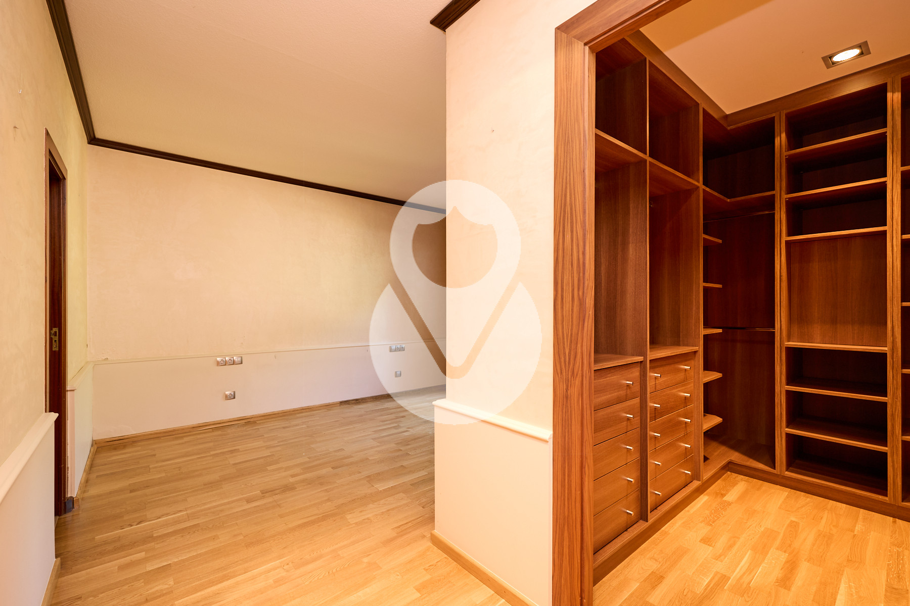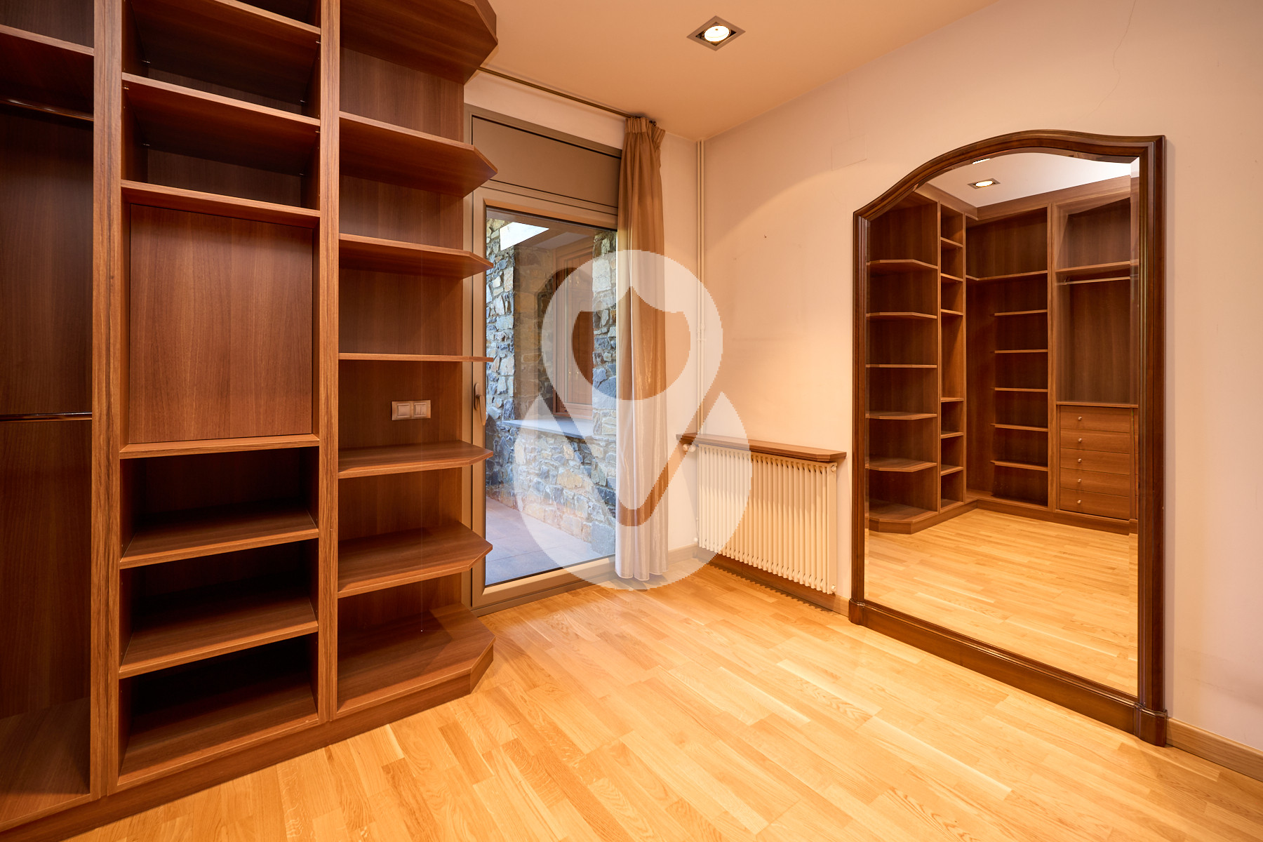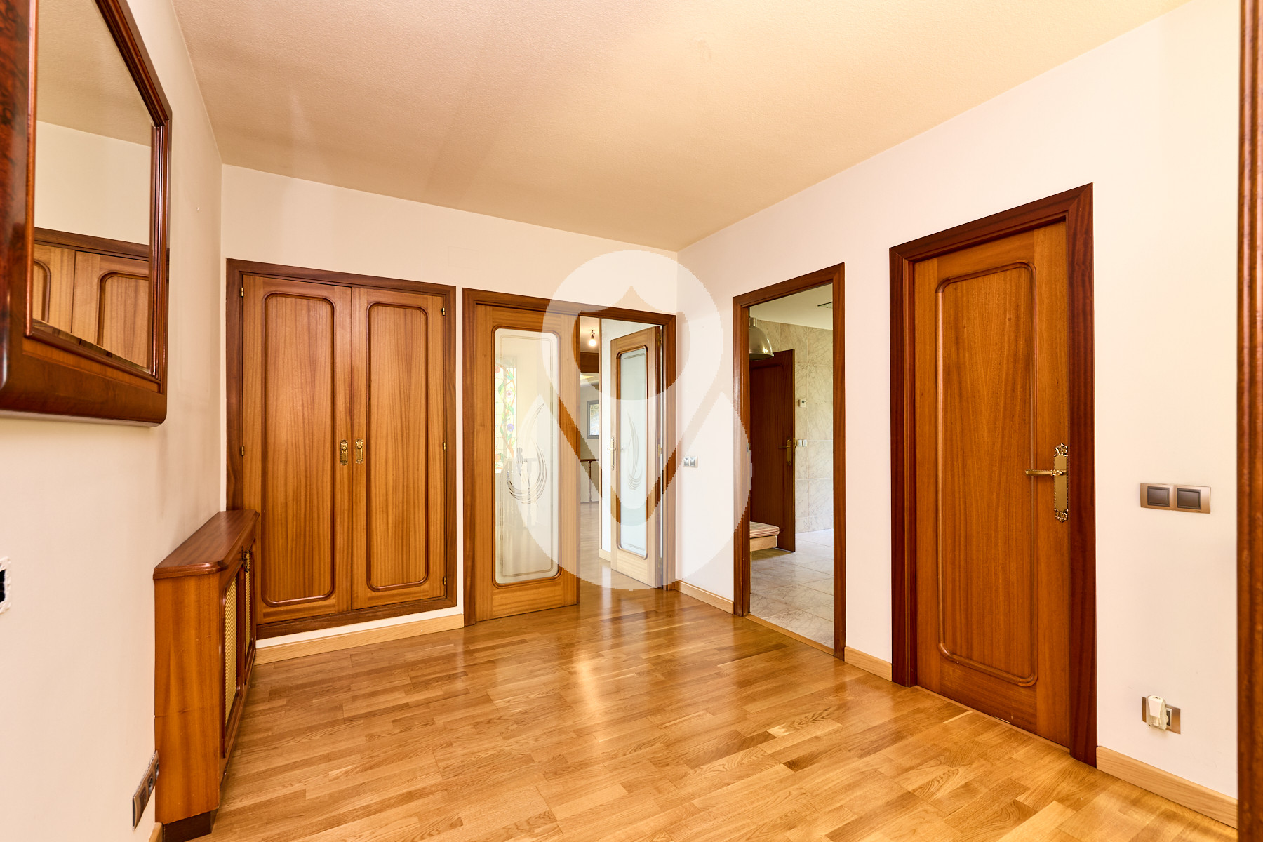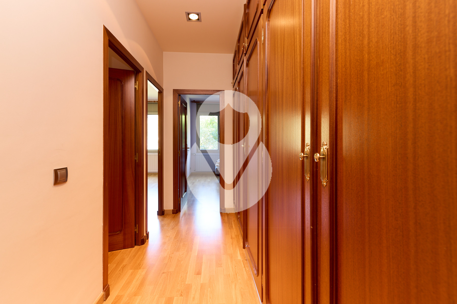 En la planta -1, de unos 130 m², se encuentra la zona de noche, formada por 4 habitaciones dobles, una de ellas máster suite, con vestidor, baño completo con ducha y acceso directo al jardín. Las otras tres amplias habitaciones, una con armarios empotrados, comparten un pasillo con gran capacidad de almacenamiento mediante armarios empotrados a lo largo de toda la pared.