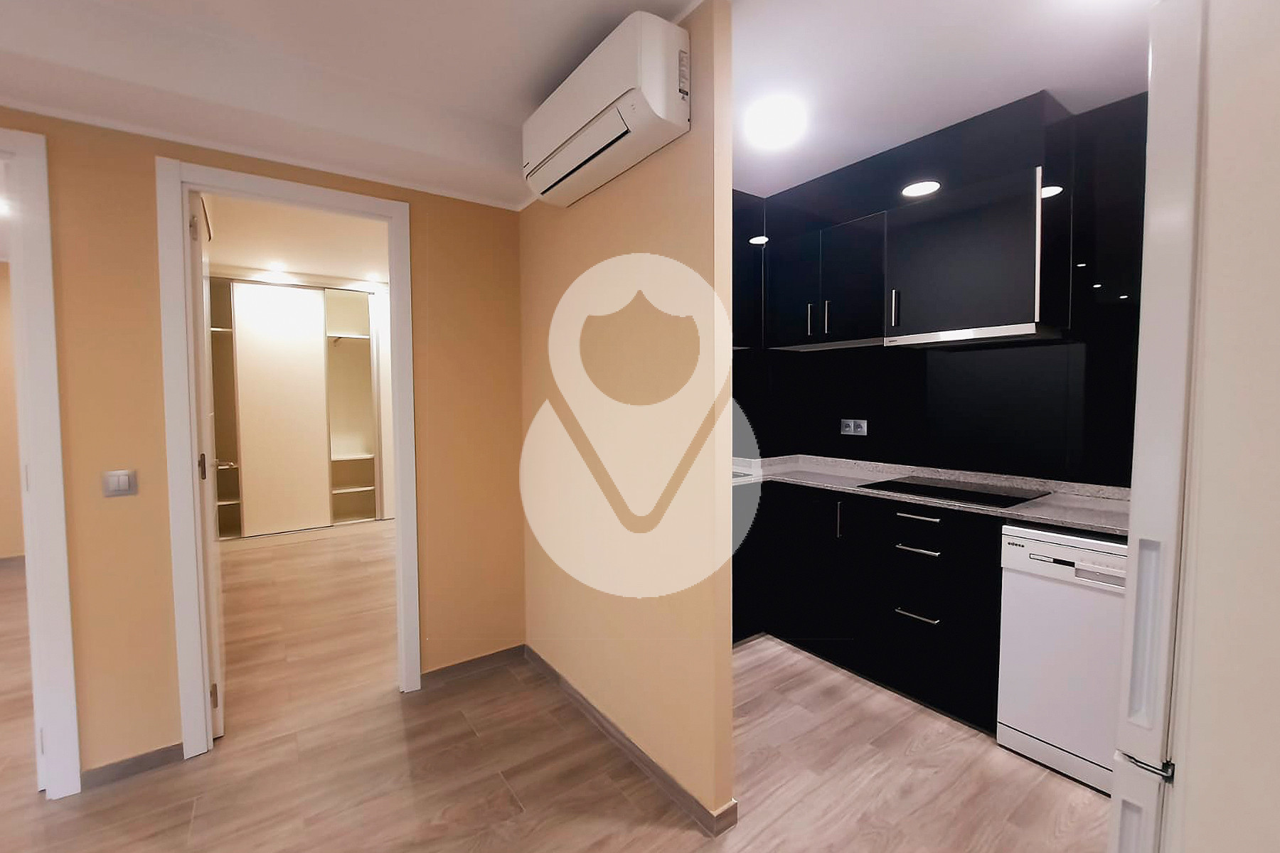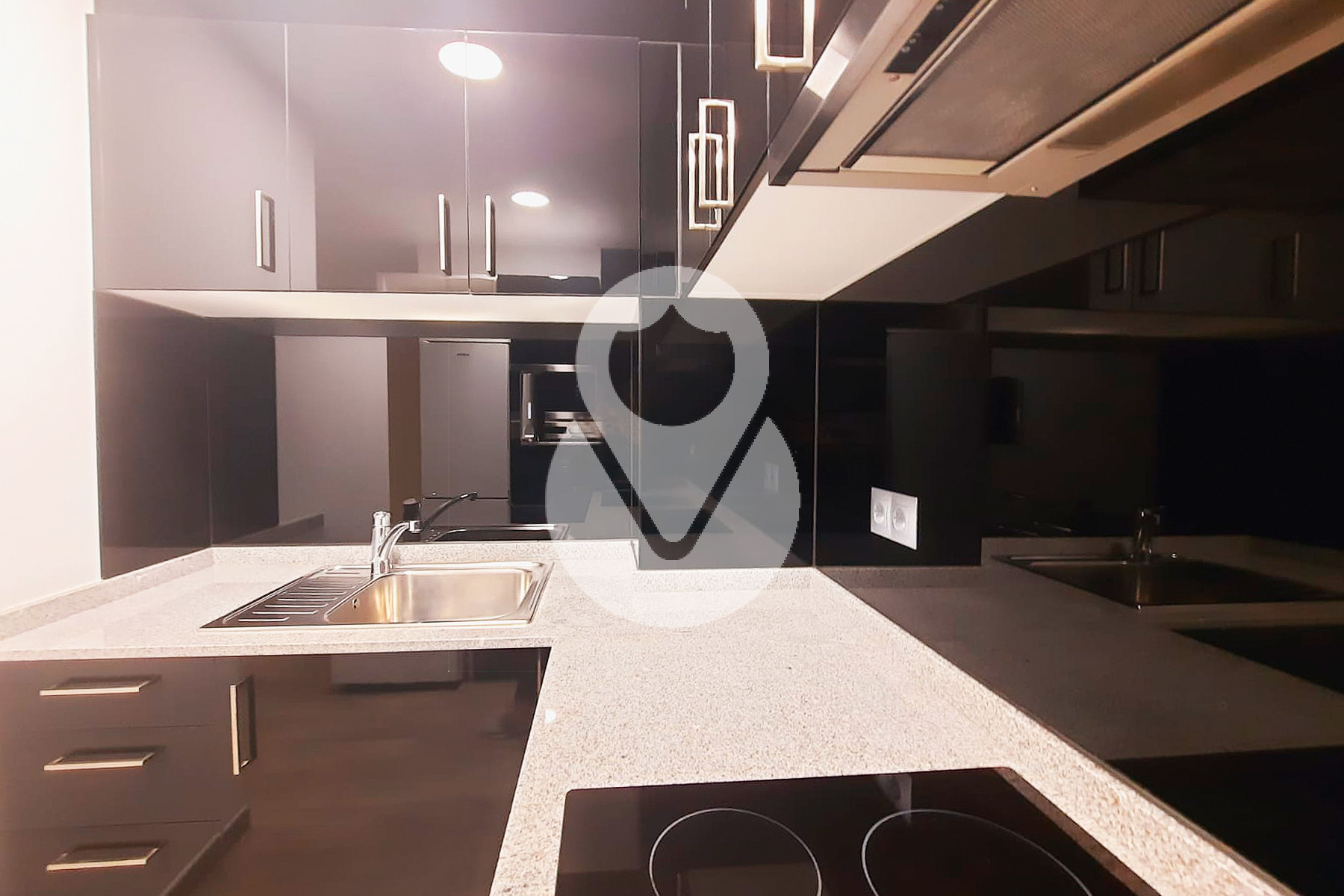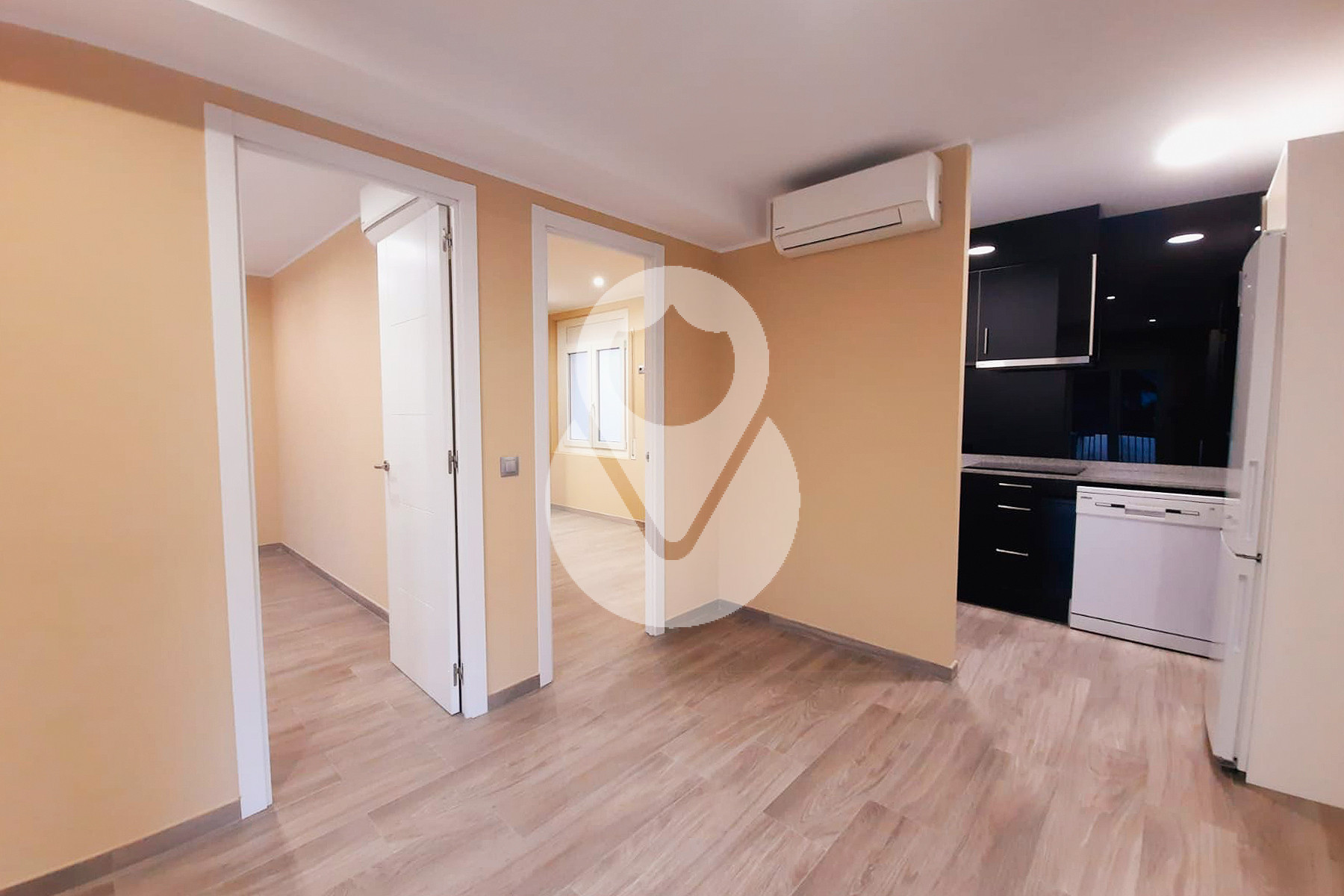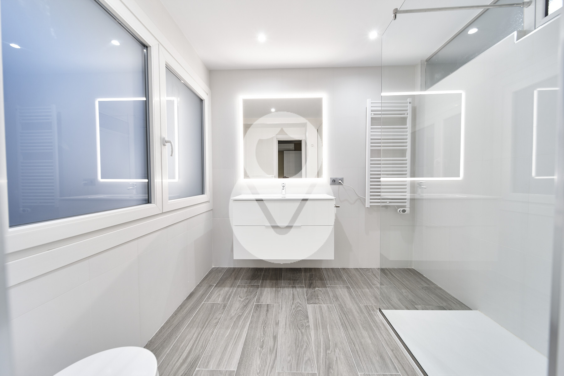 Piso muy céntrico para comprar en Andorra la Vella, cerca de todos los servicios y emplazado en uno de los principales ejes comerciales del Principado. Esta propiedad, de 83,14 m2 y 2 balcones, está totalmente reformada. Nada más entrar en el piso encontramos un amplio baño completo con ducha, seguido de una habitación para lavadero. El salón-comedor con salida a balcón tiene mucha luz natural y la cocina semi-abierta en el comedor se encuentra totalmente amueblada y equipada. La parte de noche tiene dos habitaciones dobles, una con armarios empotrados y en suite, y la otra con armarios empotrados y con salida a balcón. La propiedad dispone de aparato de aire frío-caliente y el suelo de todo el piso es de cerámica que imita al parqué.