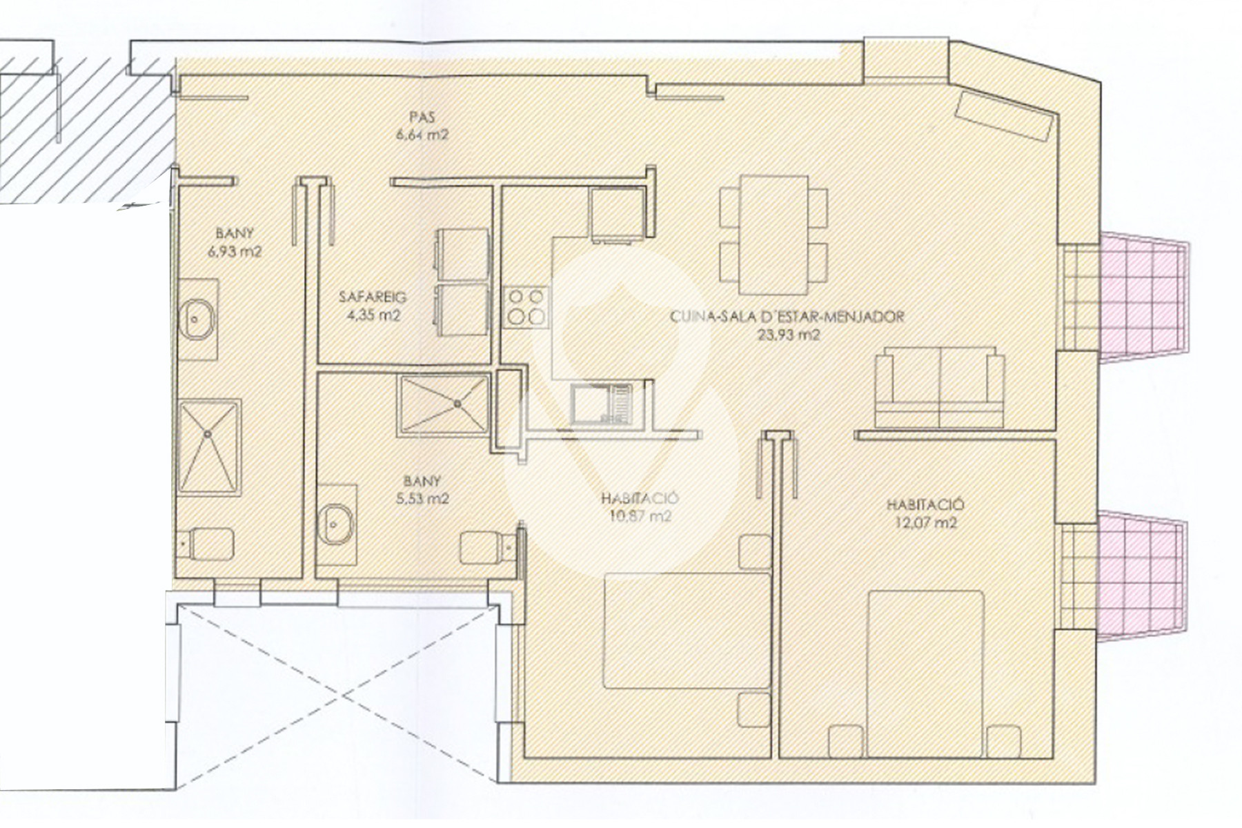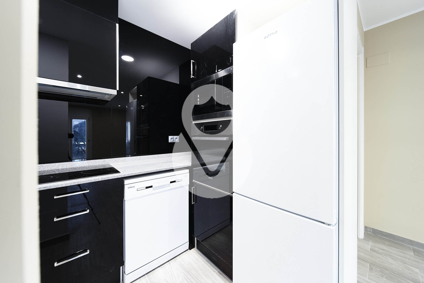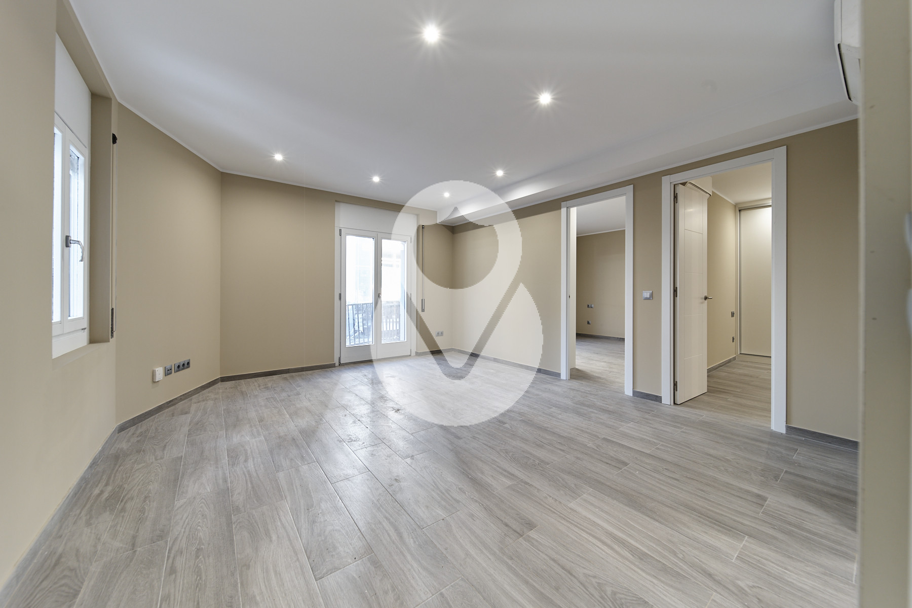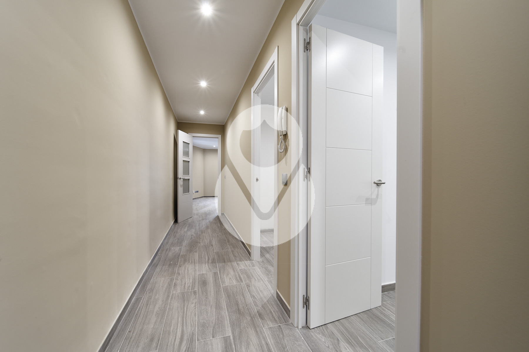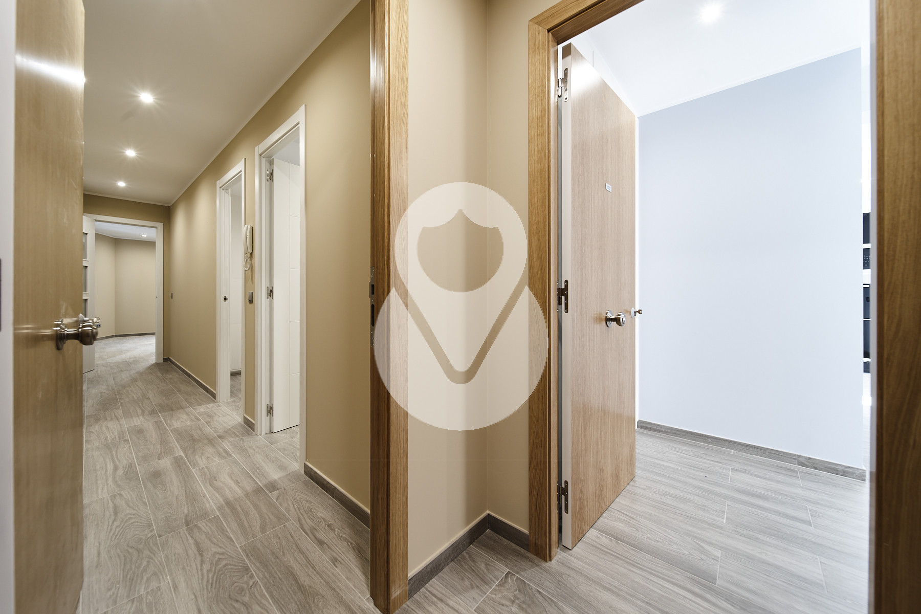 Piso muy céntrico para comprar en Andorra la Vella, cerca de todos los servicios y emplazado en uno de los principales ejes comerciales del Principado. Esta propiedad, de 83,14 m2 y 2 balcones, está totalmente reformada. Nada más entrar en el piso encontramos un amplio baño completo con ducha, seguido de una habitación para lavadero. El salón-comedor con salida a balcón tiene mucha luz natural y la cocina semi-abierta en el comedor se encuentra totalmente amueblada y equipada. La parte de noche tiene dos habitaciones dobles, una con armarios empotrados y en suite, y la otra con armarios empotrados y con salida a balcón. La propiedad dispone de aparato de aire frío-caliente y el suelo de todo el piso es de cerámica que imita al parqué.