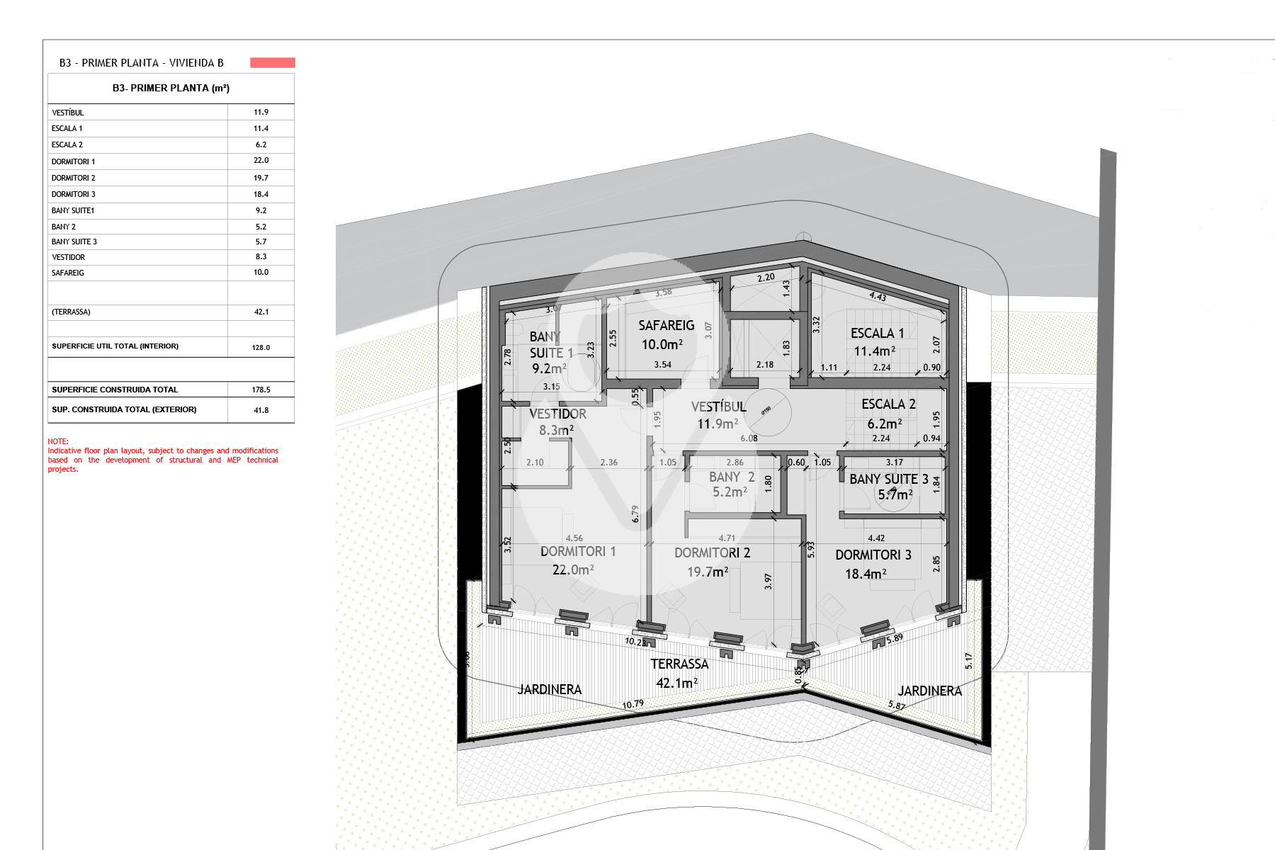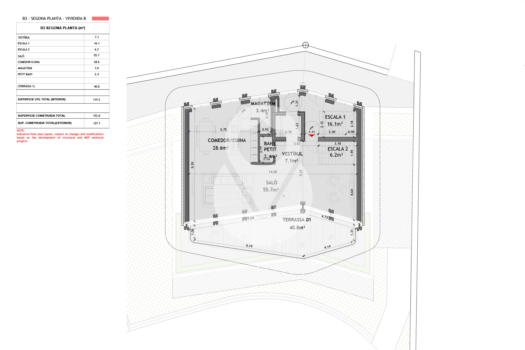 Se trata de un inmueble de nueva construcción de aproximadamente 362 m² construidos, que incluye dos terrazas orientadas de manera óptima para aportar la máxima exposición posible a la luz natural, mientras se disfrutan de las magníficas vistas de Ordino y sus valles.