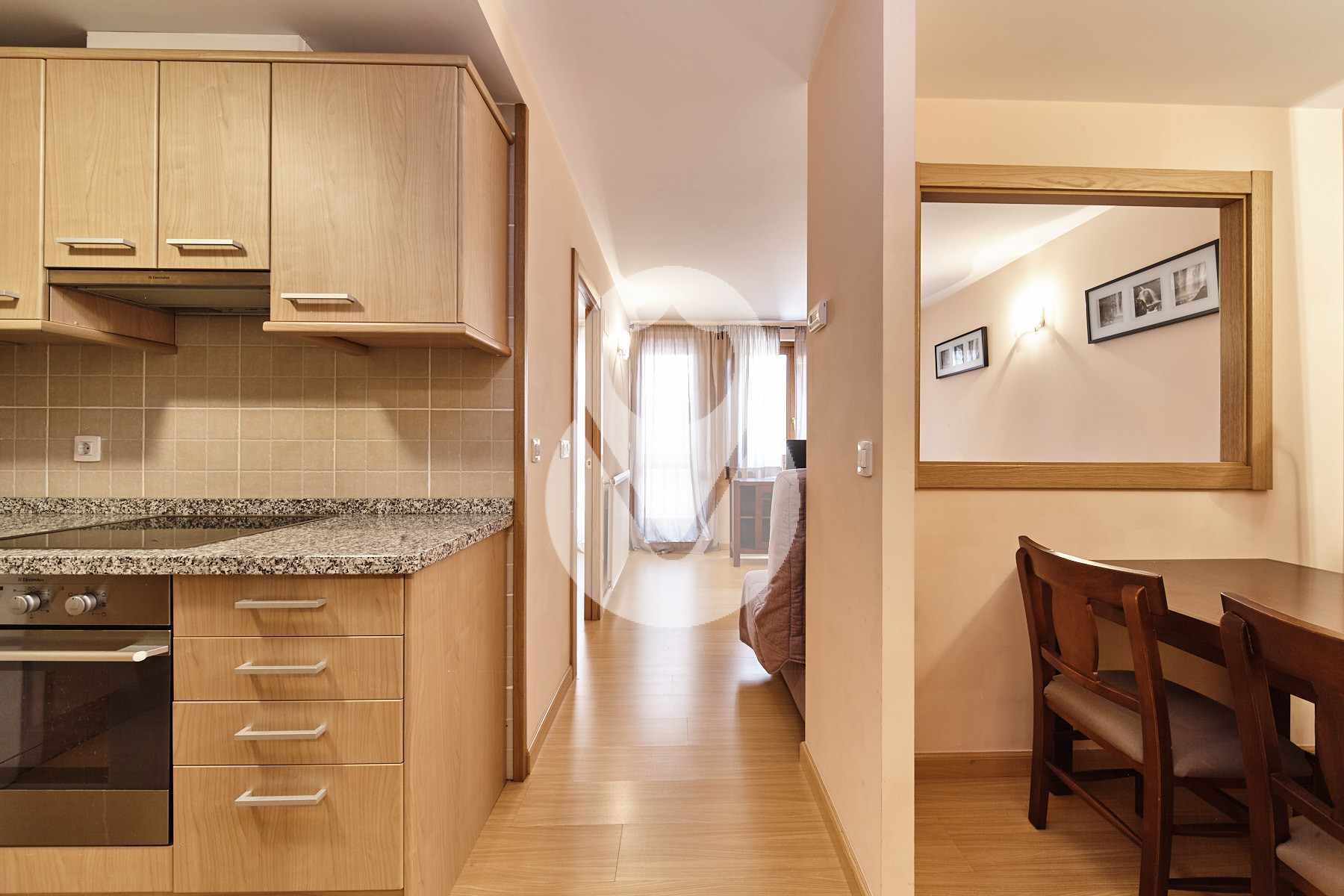 Esta cuidada propiedad dispone de una amplia zona de día que incluye un acogedor salón-comedor con una moderna y práctica cocina abierta totalmente equipada.
