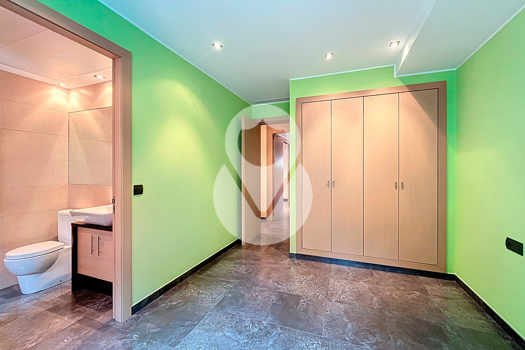 La zona de noche se distribuye en cuatro elegantes dormitorios, tres de ellos en suite con baño completo, concebidos para garantizar el máximo confort. El cuarto dormitorio dispone de acceso inmediato a un baño completo independiente. Adicionalmente, la vivienda cuenta con un lavabo de cortesía.