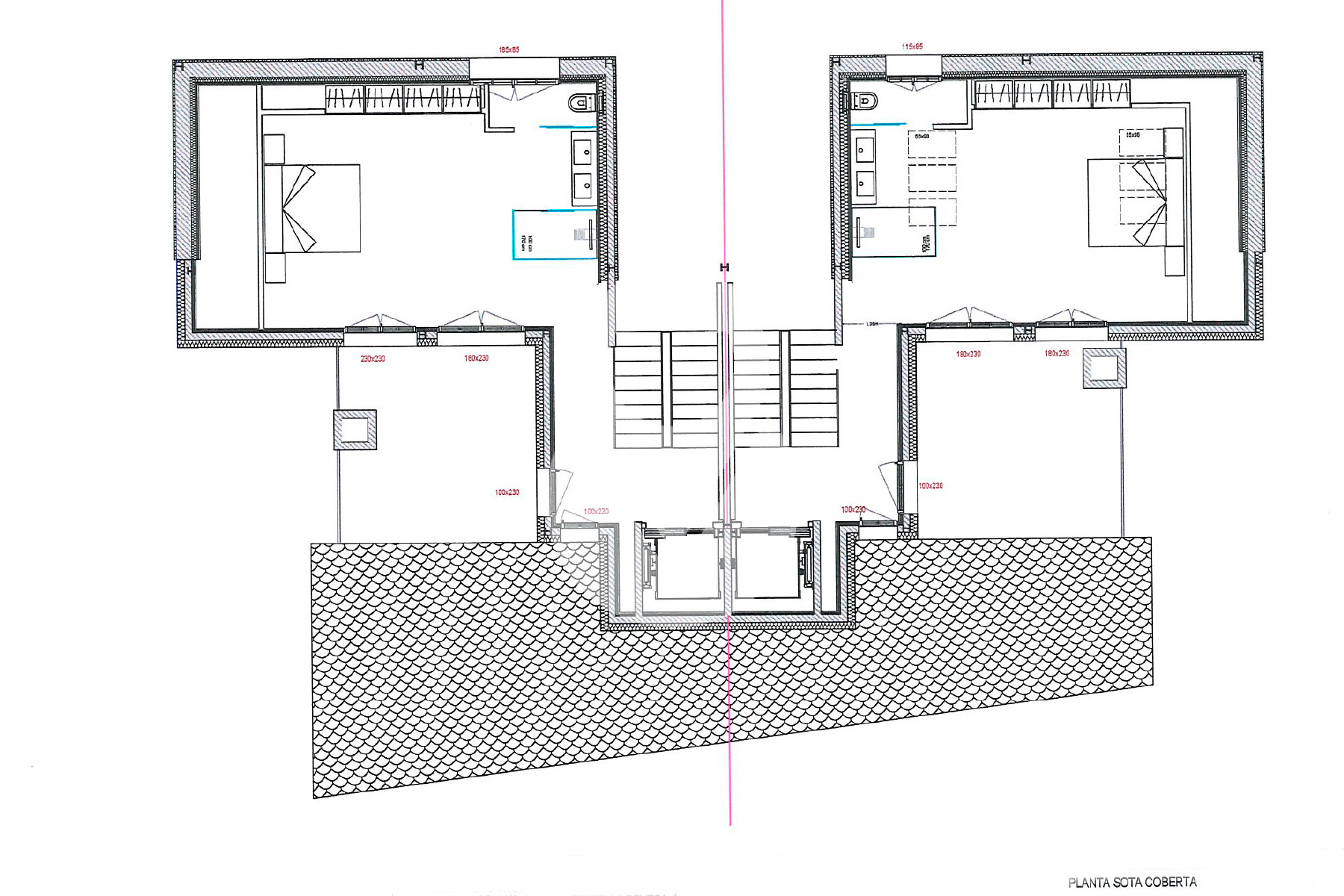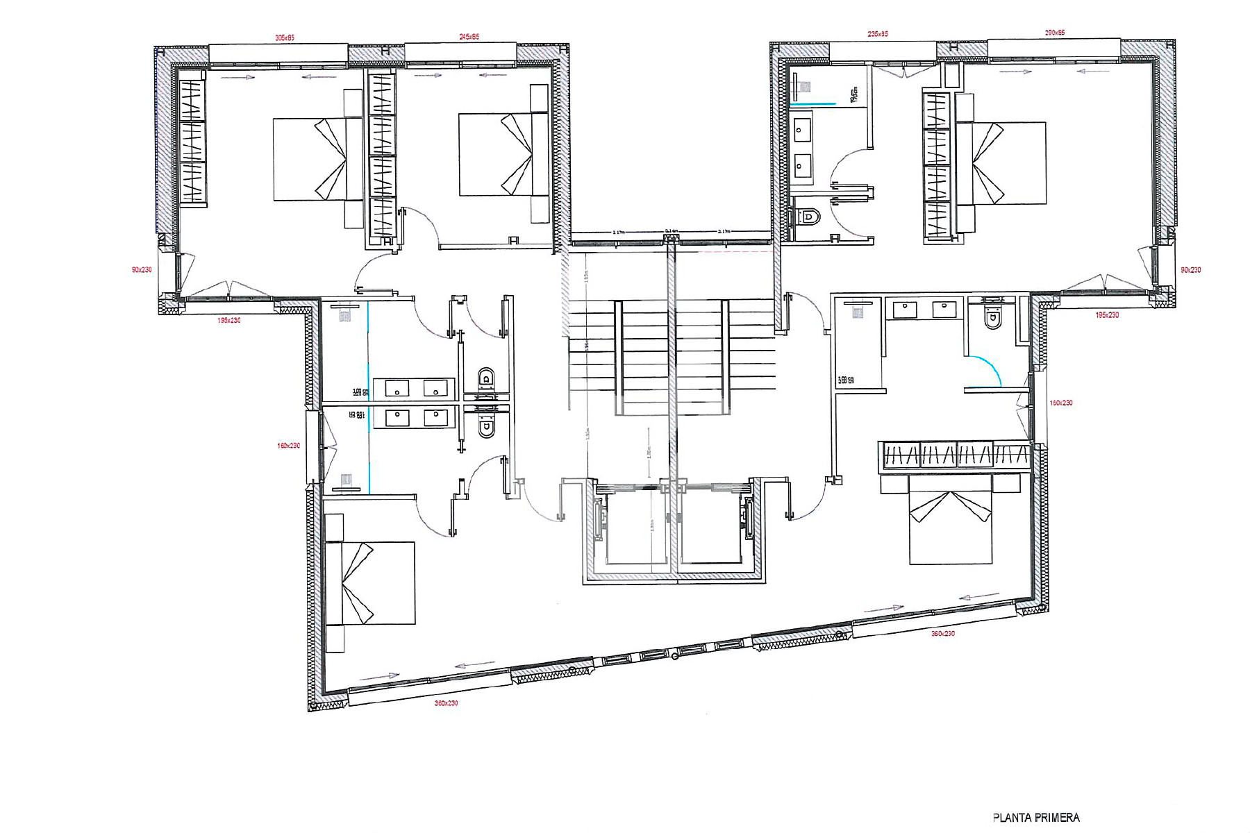 En la primera planta de la vivienda 1, hay un distribuidor que comunica con dos suites, una de ellas, con un gran ventanal similar al de la sala de estar. Ambos baños de las suites disponen de doble seno y WC separado. En cambio, la primera planta de la vivienda 2 presenta tres habitaciones, una de ellas en suite con baño segregado, y dos habitaciones adicionales que comparten un baño completo.