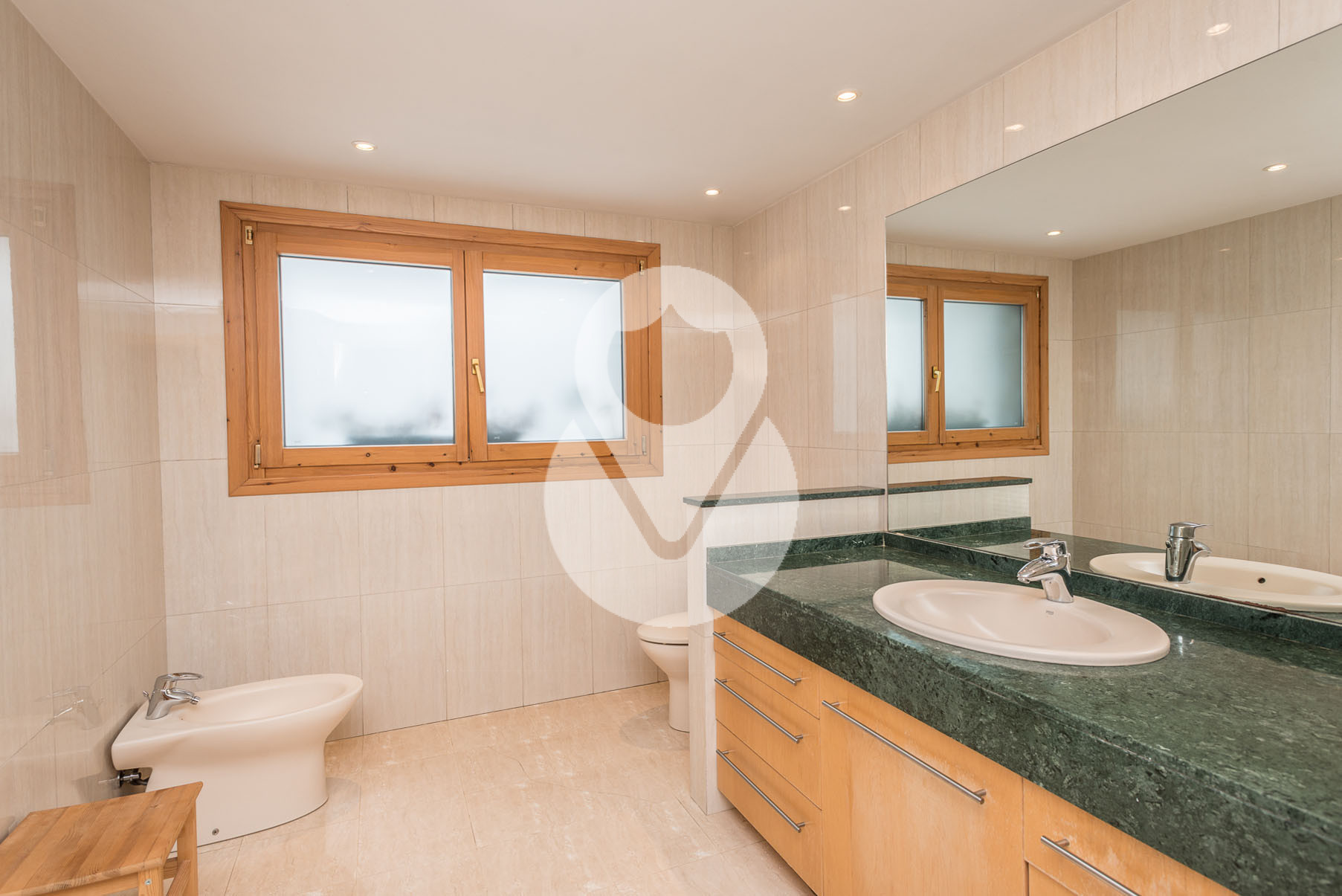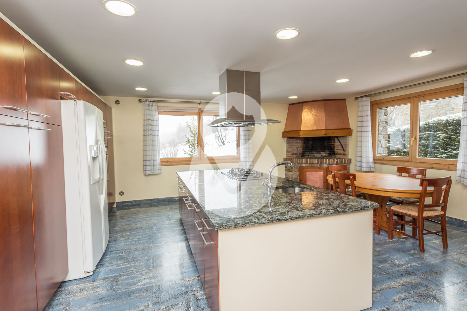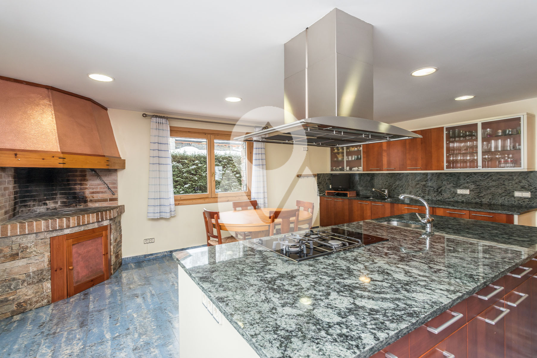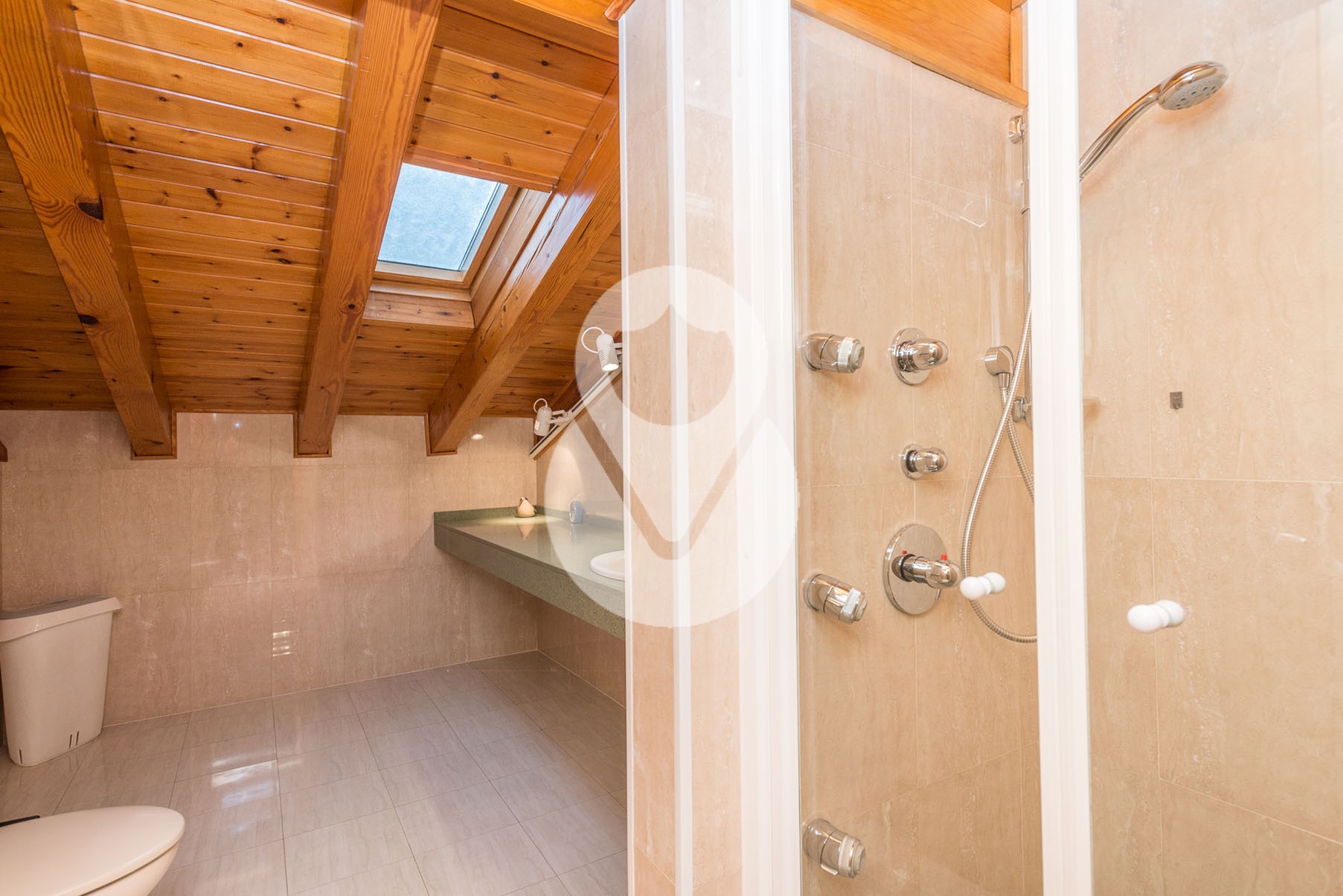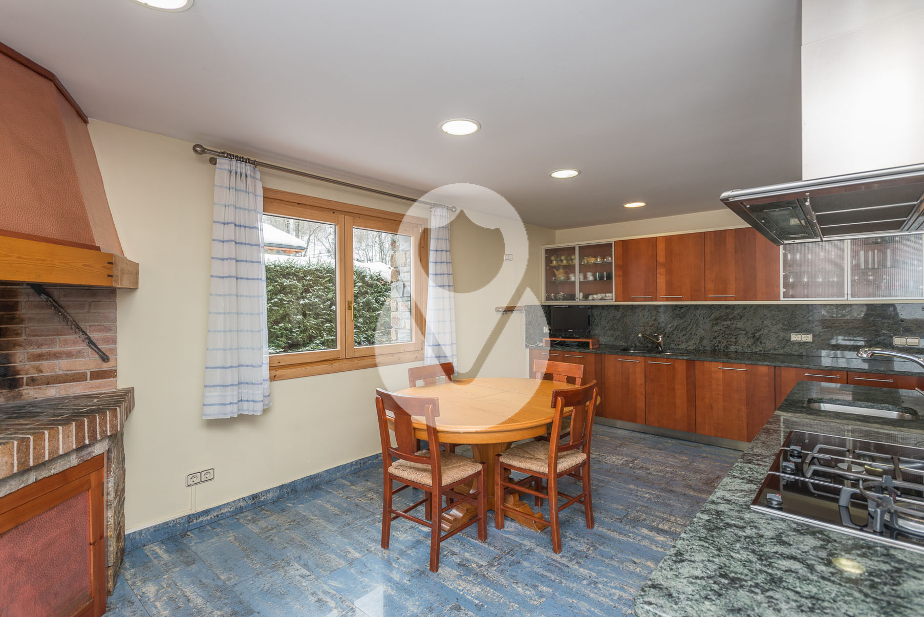 Dispone de 5 habitaciones dobles, una de ellas una suite con un gran vestidor y terraza. En la misma planta hay un gimnasio con sauna y una sala de lavandería. Tiene 3 baños completos y un salón comedor muy grande con amplios ventanales y chimenea de piedra.