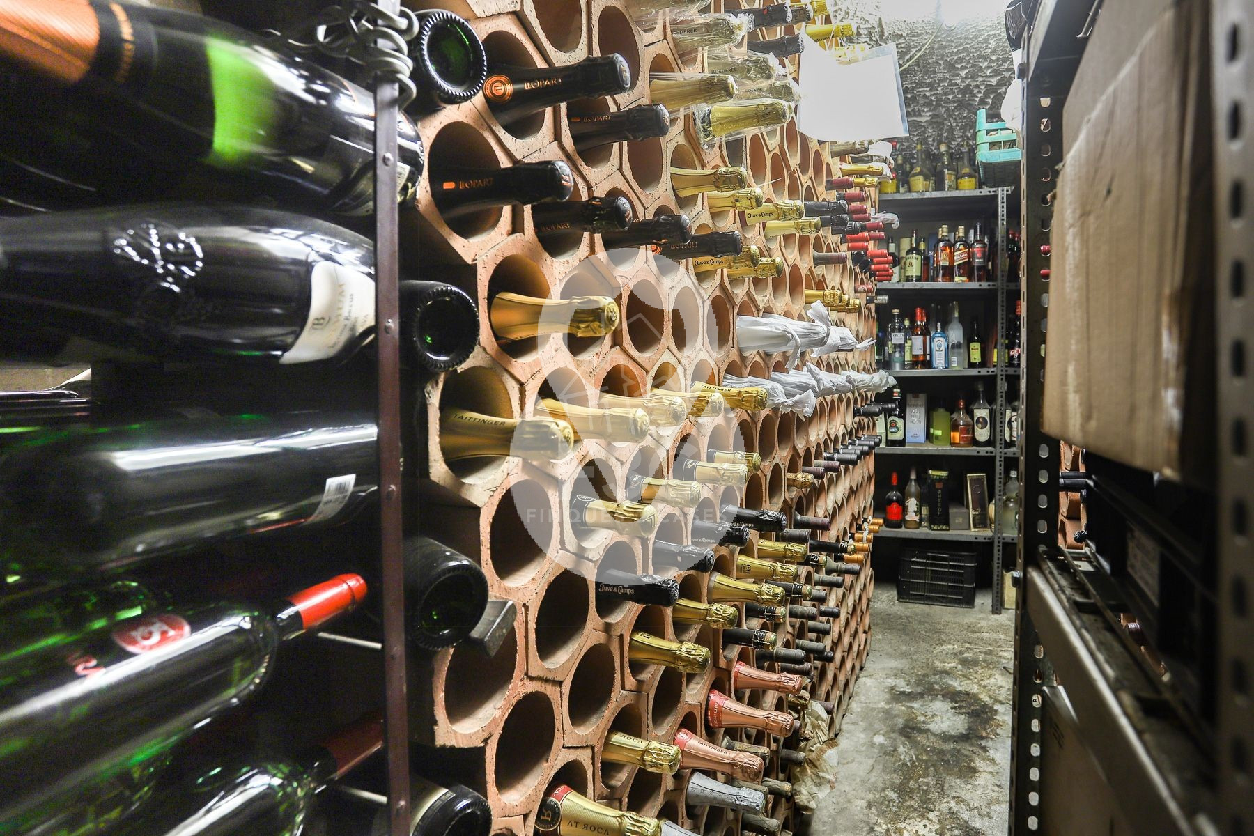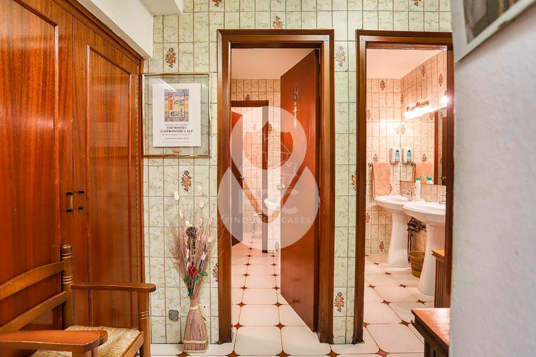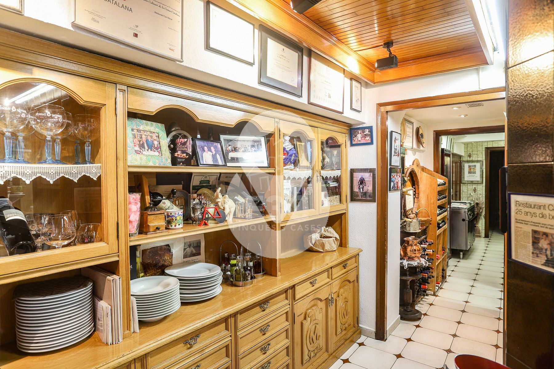 En la parte interior del local se encuentran los aseos, separados para hombres y mujeres, un área de lavavajillas totalmente equipada con lavavajillas y lavadero, congeladores, cámara frigorífica, sala de preparación preliminar con máquina de envasado al vacío y un despacho. También hay una sala técnica con la caldera propia del local, la lavadora y la secadora.