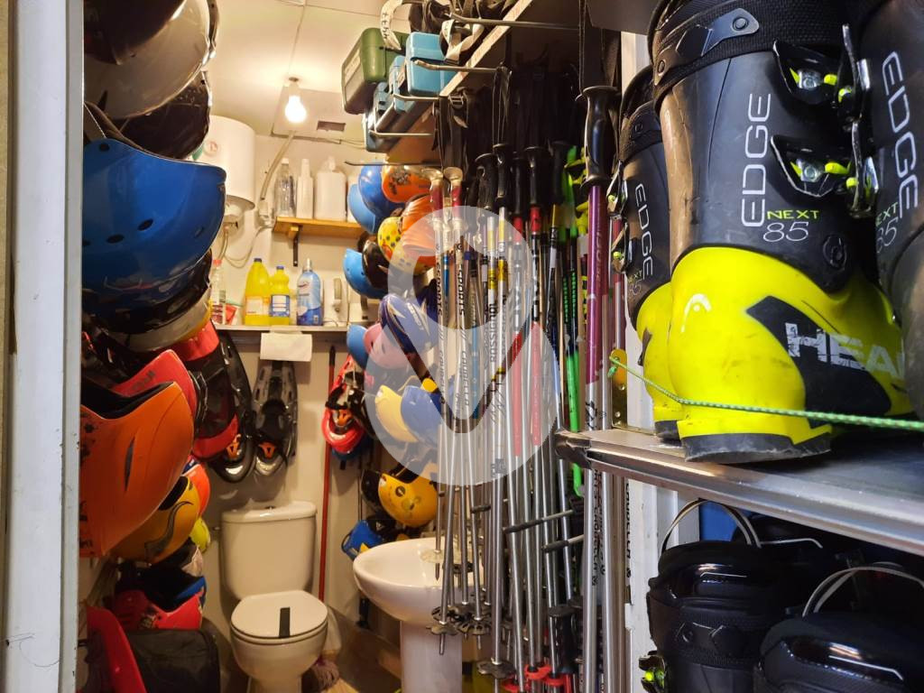 Este negocio se distribuye en 3 zonas diferentes: Entramos desde la calle a la parte principal del local, donde vemos la primera parte destinada a tienda, y justo enfrente, la segunda, que ha ido creciendo temporada tras temporada, y que ahora mismo es la que le da el mayor beneficio y calidad de vida, facturando hasta un 90% del total, destinada al alquiler, con todos los elementos para el montaje de fijaciones y regulaciones. Fuera de la vista de los clientes tenemos la 3ª zona, un almacén-taller, donde se almacena el resto del material, donde hay una mesa para el encerado y afilado de cantos y dejar los esquís y tablas listos para la nieve. Además dispone de 2 máquinas seca-botas. Todas las paredes están adaptadas para almacenar el máximo material. (Igualmente existe la opción de alquilar un almacén cerca de la tienda aparte). También hay un servicio de aseo.