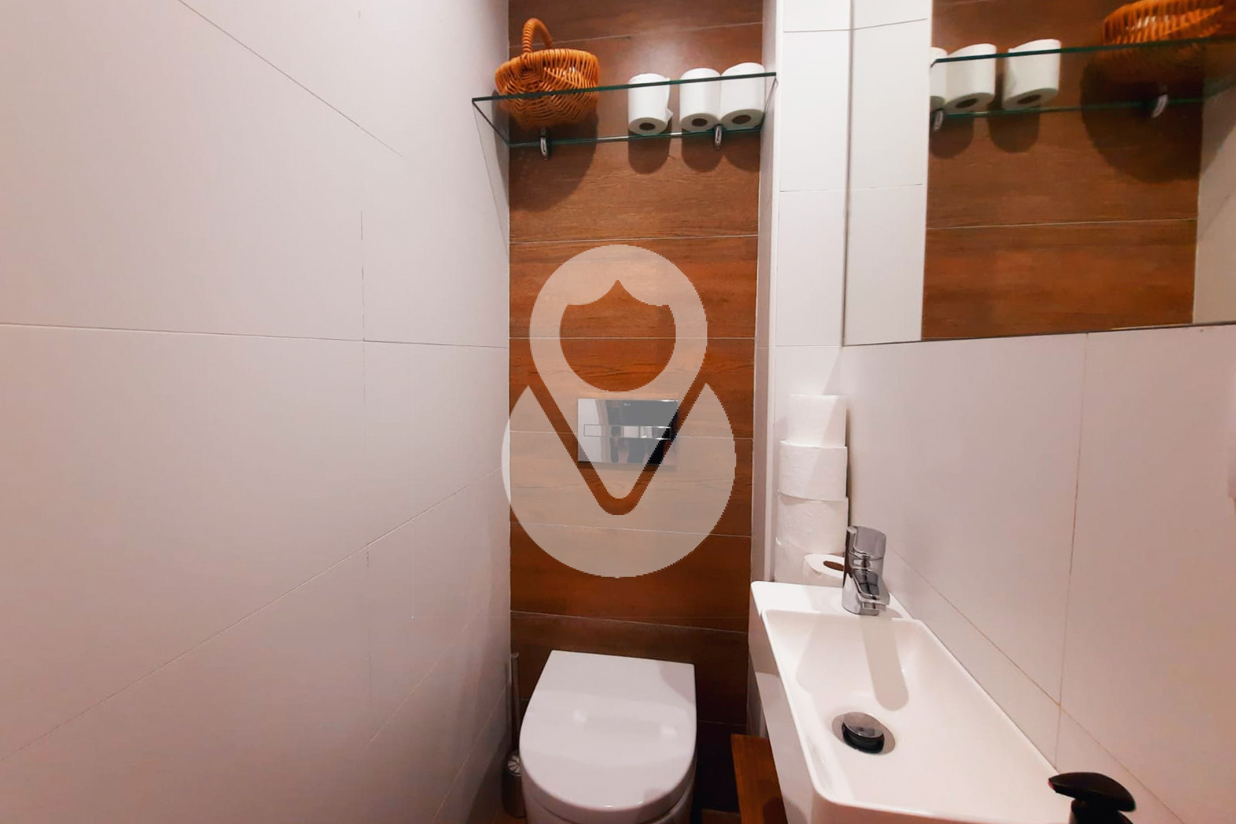El piso cuenta con tres habitaciones exteriores: una doble y dos individuales, amplias, ideales para familias o para alojar a amigos. Además, ofrece un baño completo con ducha y un aseo para tu comodidad.