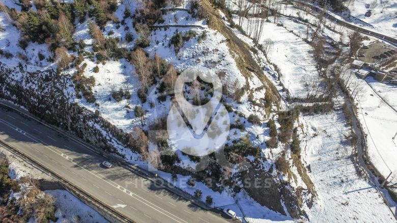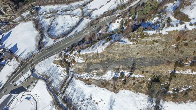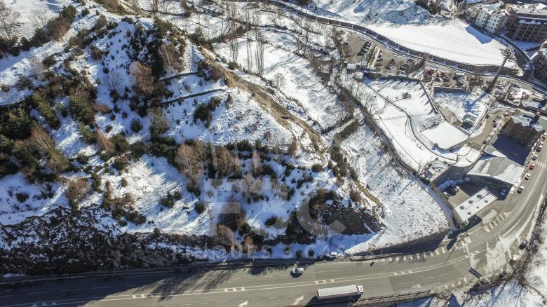 Este terreno está formado por dos parcelas de 1.000 m² cada una. Dispone de una comunicación excelente con la carretera que va de España a Francia y en un futuro próximo con la Massana i Ordino gracias a la proximidad inmediata de los túneles de Valires.