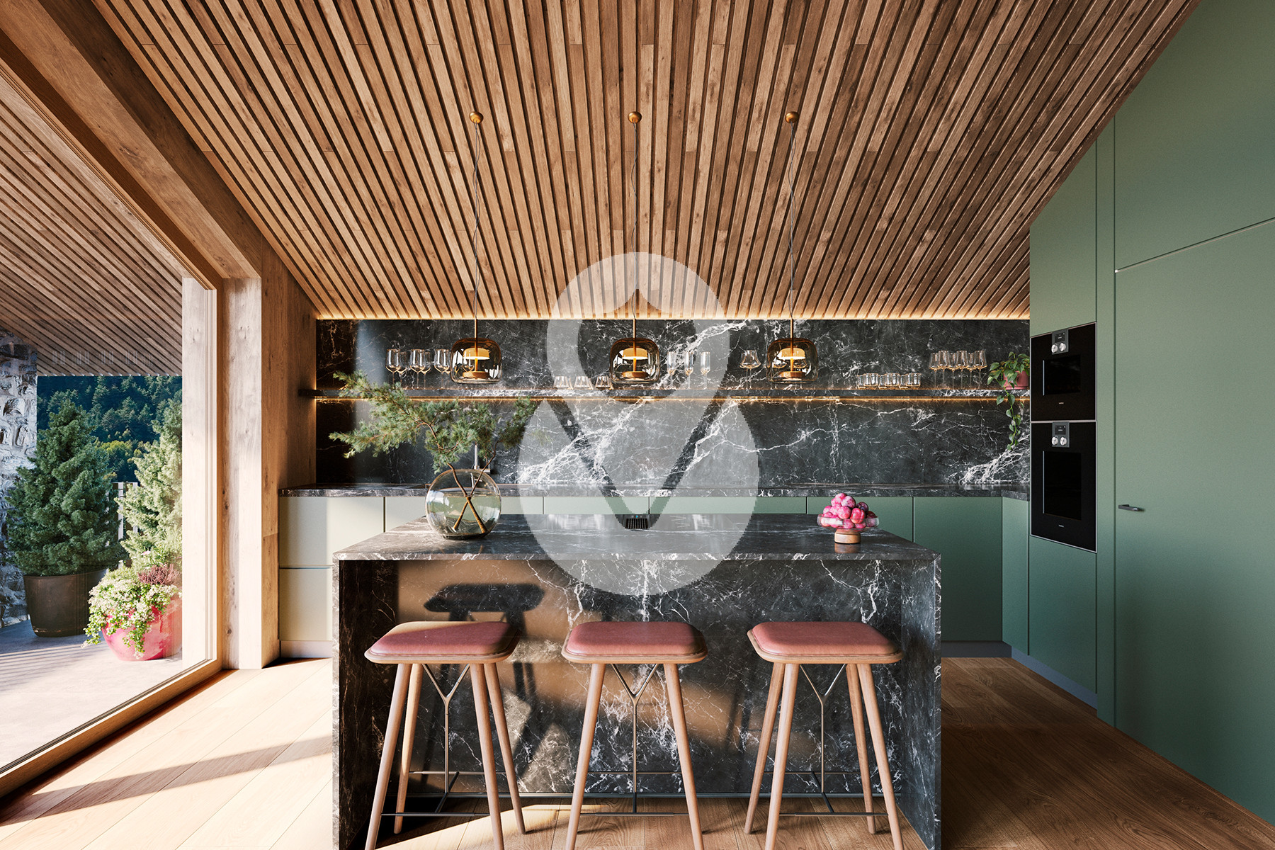 Finalmente, la planta -3 está destinada a un amplio garaje con capacidad para cuatro coches, preinstalación para carga de vehículo eléctrico, soporte para bicicletas con punto de carga y guardaesquís. Un ascensor silencioso de cuatro plazas conecta todas las plantas.