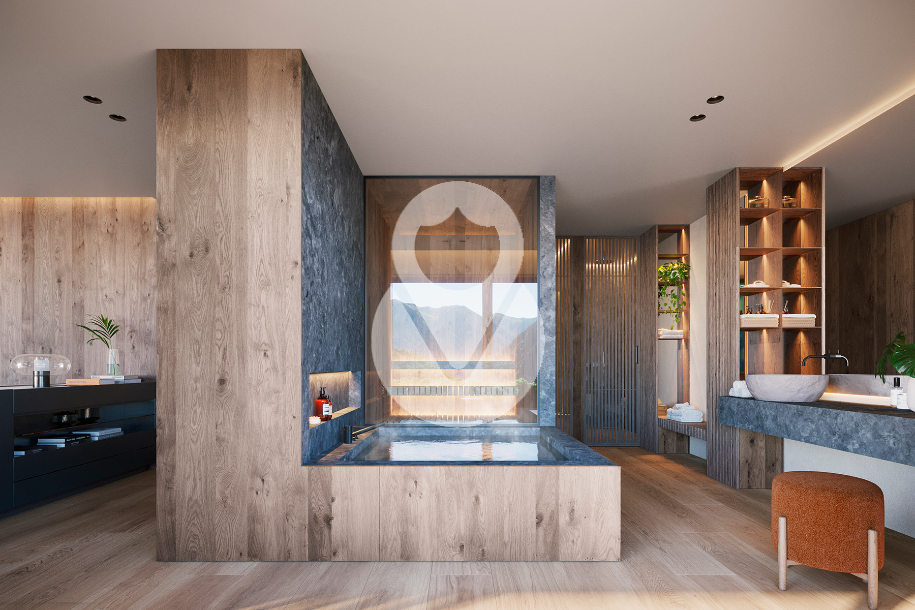 La planta -1 alberga tres habitaciones en suite con acceso a terraza. En la planta -2 se pueden elegir dos opciones de master suite con vestidor y baño privado, ambas con terraza privada. Todos los baños cuentan con espejos antivaho y toalleros eléctricos.