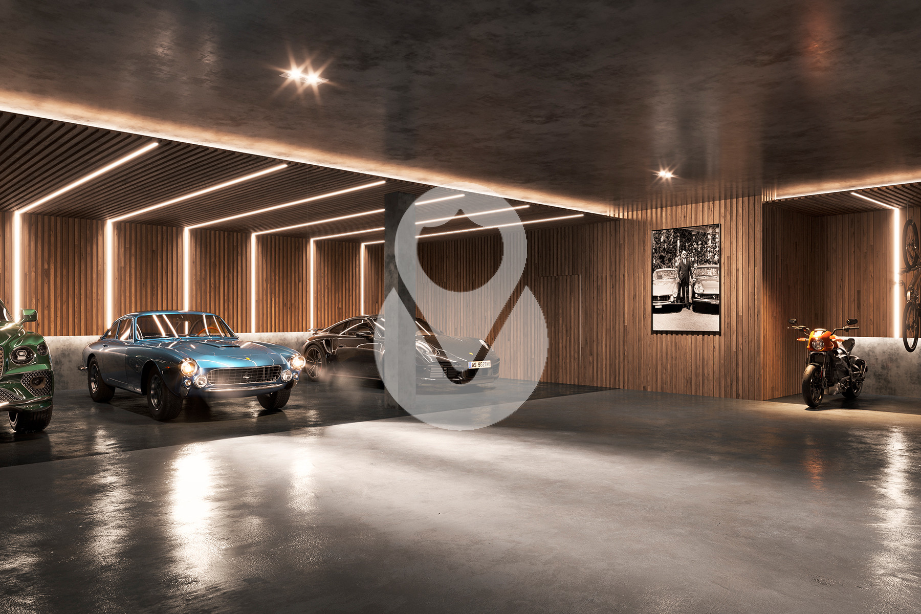 Finalmente, la planta -3 destina su espacio a un amplio garaje con capacidad para cuatro coches, preinstalación de carga para vehículo eléctrico, rack para bicicletas con punto de carga y guarda-esquís. Un ascensor silencioso de cuatro plazas conecta todas las plantas.