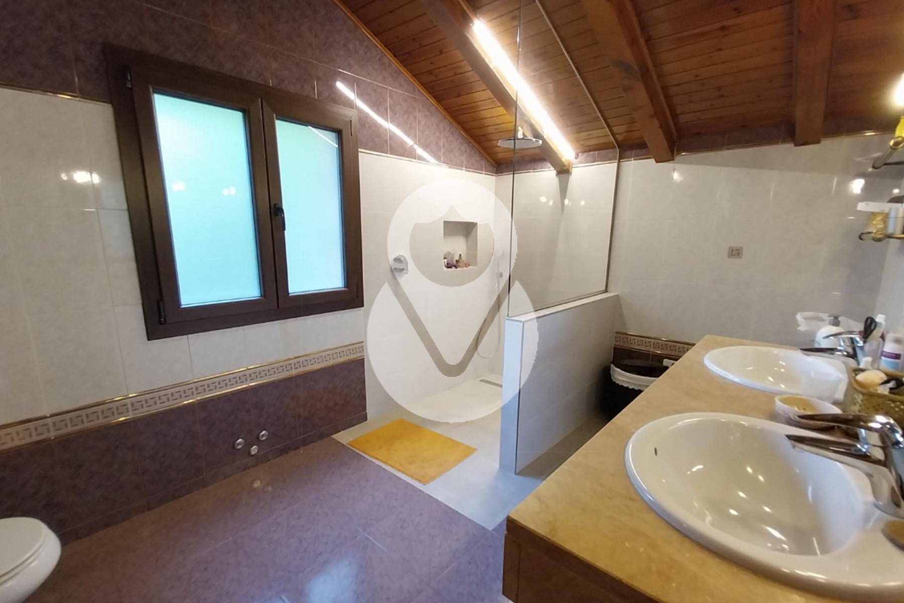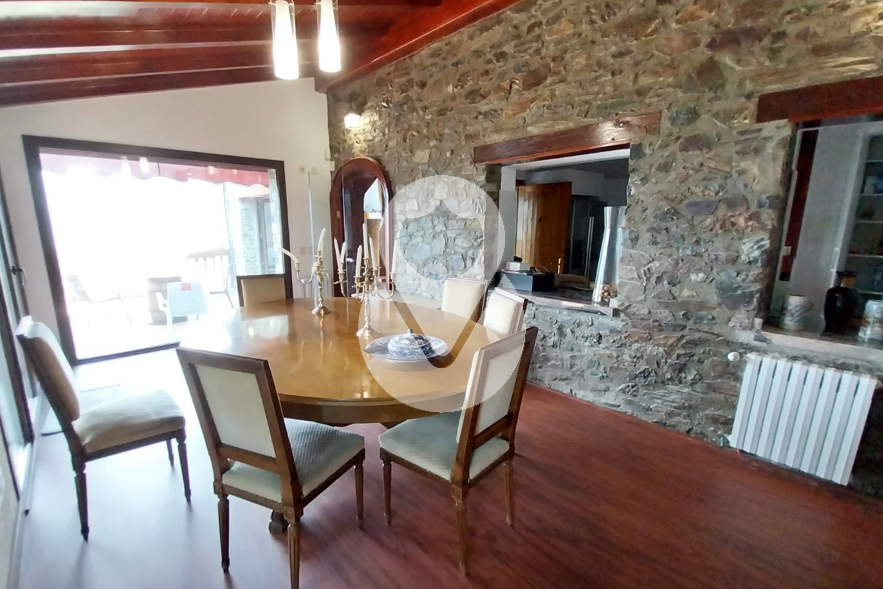 El inmueble es de estilo rústico y está formado por 2 plantas, más la bajo cubierta conectada por una amplia escalera. Tiene una superficie total aproximada construida de 600 m2.